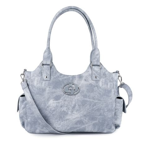 GYDAの中で人気の高い“GGロゴ”を変形させた新しいロゴを大きなメタルにした新シリーズ。ウォッシュ加工を施したデニムのような特徴的なフェイクレザーを使用。