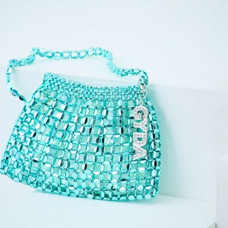 ビーズのようなメタリックパーツを使用したアクセサリー感覚で持てるミニバッグ。