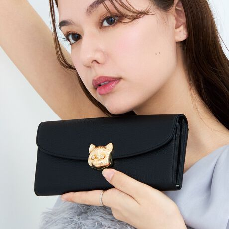 ネコメタルが活きるようにかぶせタイプにした長財布。