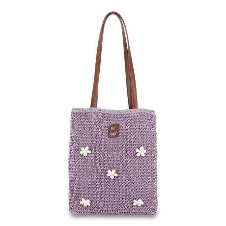 夏らしさたっぷりなタテ型トートバッグ。本体にはペーパー素材を使用し、一点一点手編みで編まれたかごバッグをベースにお花のビーズパーツを掛け合わせました。持ち手にはそれぞれのバッグに付いたPJの合皮ワッペンと同じ素材を使用。細く仕上げる事で本体の可愛さを引き立てています。