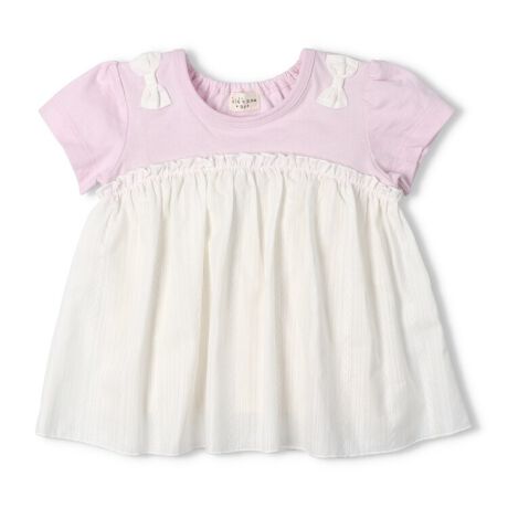 さらっとした天竺素材に異素材を重ねたドッキングデザインの半袖Tシャツ。肩のリボンもポイント!身頃はブラックは水玉柄のシフォン素材、ピンクは花柄の綿レース。どちらも女の子らしくて可愛い1枚。襟ぐりの後ろ部分がゴム仕様になっているので、着脱もスムーズに出来ます!【アイテム】半袖 プレゼント ギフト プルオーバー 赤ちゃん服 ベビー服 贈り物 トップス 無地 シンプル ガーリー カジュアル お洒落 オシャレ かわいい 可愛い 普段着 デイリーウェア お出かけ着 子ども こども 女児 女の子 ガールズ キッズ ベビーサイズ 幼稚園 保育園通園 2026年春夏物新作 丸高衣料 黒色 フラワー ドット キッズズー