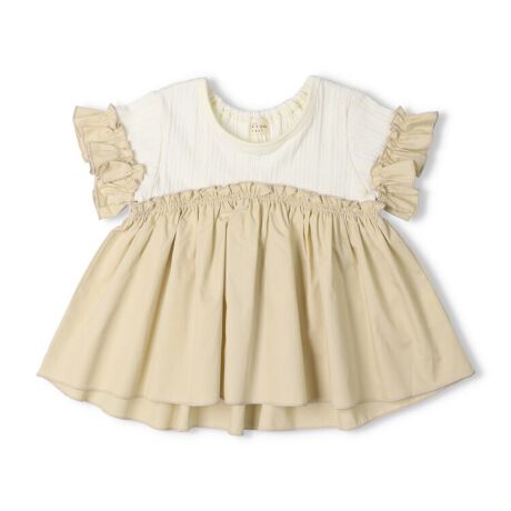 重ね着風のドッキングデザインの半袖Tシャツ。ブラックは水玉柄のさらっとした天竺素材にリブのインナーを重ねたドッキングチュニックTシャツデザイン。肩のフリルもポイント!ベージュは袖口と切替下に布帛を使用したドッキングデザインの半袖Tシャツ。ふんわりと広がる綺麗なシルエットがポイント!【アイテム】半袖 プレゼント ギフト プルオーバー 赤ちゃん服 ベビー服 贈り物 トップス 無地 シンプル ガーリー カジュアル お洒落 オシャレ かわいい 可愛い 普段着 デイリーウェア お出かけ着 子ども こども 女児 女の子 ガールズ キッズ ベビーサイズ 幼稚園 保育園通園 2026年春夏物新作 丸高衣料 ドット 黒色 キッズズー