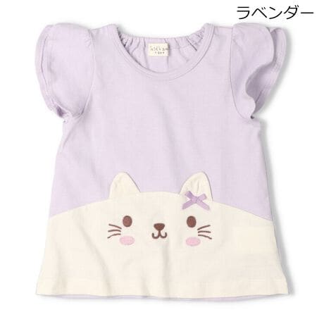 アイキャッチのあるねことうさぎの顔がポイント!フレアーに広がった袖も可愛い!リボンのモチーフもさらに女の子らしい印象に!衿ぐり後ろ部分がゴム仕様なので、着脱もスムーズに出来ます。【アイテム】半袖 プレゼント ギフト プルオーバー 赤ちゃん服 ベビー服 贈り物 トップス 無地 シンプル ガーリー カジュアル お洒落 オシャレ かわいい 可愛い 普段着 デイリーウェア お出かけ着 子ども こども 女児 女の子 ガールズ キッズ ベビーサイズ 幼稚園 保育園通園 2026年春夏物新作 丸高衣料 ネコ 猫 ウサギ アニマル 動物 ラベンダー 薄紫色 アプリコット ピンク キッズズー コットン100% 綿100%