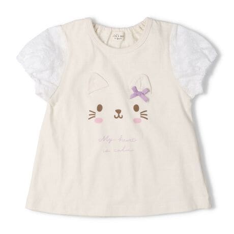 アイキャッチのあるねことうさぎの顔がポイント!オフホワイトはネコ、ピンクはウサギのデザイン。袖は女の子らしい上品なレース素材。立体になった動物の耳が可愛い1枚。後ろの衿ぐりがゴム仕様なので、着脱もスムーズに出来ます。【アイテム】半袖 プレゼント ギフト プルオーバー 赤ちゃん服 ベビー服 贈り物 トップス 無地 シンプル ガーリー カジュアル お洒落 オシャレ かわいい 可愛い 普段着 デイリーウェア お出かけ着 子ども こども 女児 女の子 ガールズ キッズ ベビーサイズ 幼稚園 保育園通園 2026年春夏物新作 丸高衣料 オフホワイト 白色 ピンク ネコ 猫 ウサギ 動物 アニマル キッズズー コットン100% 綿100%