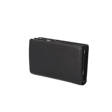 【端正なシルエット】羊革を使った軽やかで高品質な「KATHARINE HAMNETT LONDON」の二つ折り財布。【フランス産羊革の質感】植物タンニン鞣しで仕上げた柔らかな羊革を採用し手に取った瞬間から上質な心地よさを実感◎【独立した収納の利便性】小銭入れとカード収納が別々に配置され必要なものをすぐに取り出せる機能的なレイアウト〇【L字ファスナーの快適】開口部が大きく開いて小銭の視認性が高く取り出しやすさに優れたスマートな構造♪【カード収納の使いやすさ】スナップボタンを開くと札入れとカードポケットがバランスよく配置され十分な収納力を確保!【軽量設計の魅力】わずか109gの軽さで毎日の持ち歩きに負担がなくポケットやバッグに自然に収まるコンパクトさ◎【経年変化を楽しむ喜び】使い込むほどに表面に自然な艶が生まれ手にしっとりと馴染んでいく革の育ちを日々感じられる逸品♪