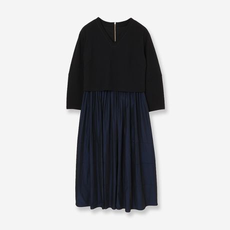 ニュアンスたっぷりな配色で、大人の洗練スタイルが完成するドッキングワンピース