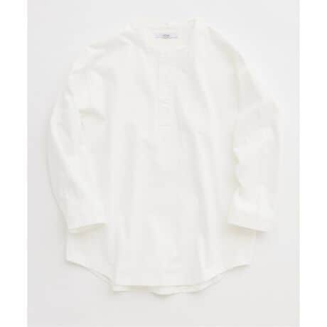 首元はバンドカラーのようなミニマルなヘンリーネック。