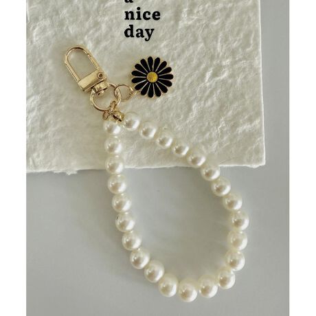 【商品名】 ホワイトパールブラックフラワー キーチャーム