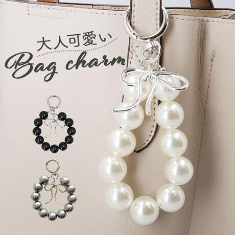上品な光沢を放つパール調ビーズを連ねたキーチャーム。立体感のあるリボンモチーフがアクセントになり、エレガントさと可愛らしさを兼ね備えたデザイン。バッグや鍵に付けるだけで華やかさをプラスし、日常使いから特別なお出かけまで幅広く活躍。大人っぽさの中に遊び心を感じさせるアイテム。