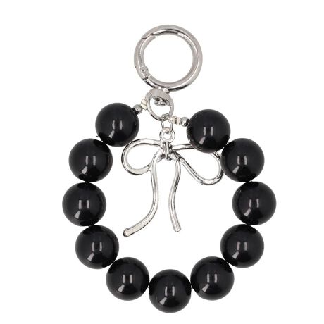 上品な光沢を放つパール調ビーズを連ねたキーチャーム。立体感のあるリボンモチーフがアクセントになり、エレガントさと可愛らしさを兼ね備えたデザイン。バッグや鍵に付けるだけで華やかさをプラスし、日常使いから特別なお出かけまで幅広く活躍。大人っぽさの中に遊び心を感じさせるアイテム。