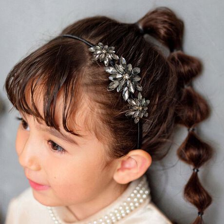 きらめくラインストーンで象られた、まるで陽の光を浴びた雪の花のような「サニー カチューシャ」。透明感あふれる花びらデザインは、光の角度によって様々な表情を見せ、見る人を魅了する高級感を放ちます。細部にまでこだわったラインストーンは、動くたびにキラキラと輝き、お顔周りを一層華やかに演出。さらに、お子様が安心して使えるよう、カチューシャの先端は肌当たりの良い素材でカバーされており、長時間の着用でも痛くなりにくい仕様にこだわりました。発表会や結婚式、七五三といった特別な日はもちろん、いつものコーディネートにさりげない輝きをプラスしたい時にもぴったり。ブラック、シルバー、ゴールドの3色から、シーンやファッションに合わせてお選びいただけます。ひとつ加えるだけで、ワンランク上の上品なヘアスタイルが簡単に完成します。