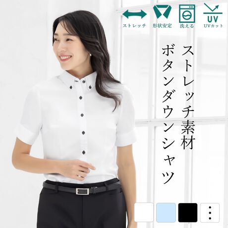 ストレッチ素材で伸縮性がありお仕事中もストレスフリーな着心地、女性に嬉しいUVカット機能で紫外線対策にも◎
