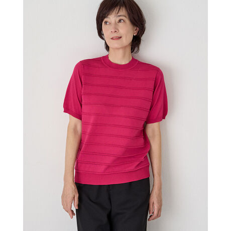 綿ポリエステルのTシャツ感覚で着られるニット。