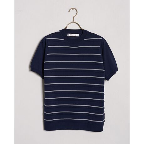 前身頃は涼しげなアイレット柄のリップル地で、発色の良いカラーと紺ベースのボーダーが夏らしいアクセントに。