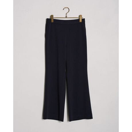 布帛見えするジャージ素材のセミフレアーパンツ。