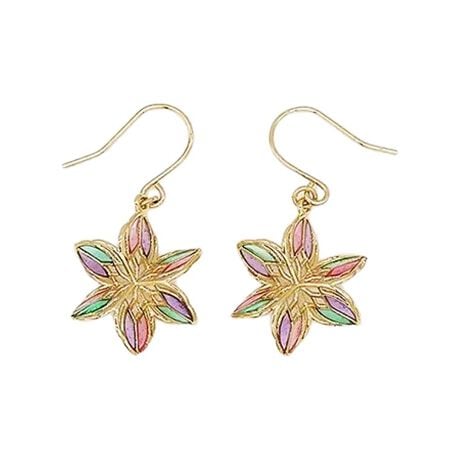 [型番:PC24112]モロッコタイルや模様から着想したアクセサリーシリーズ。お花モチーフは角度によって形も違って見える立体感あるピアス。ステンドグラスのような美しい配色のピアスです。