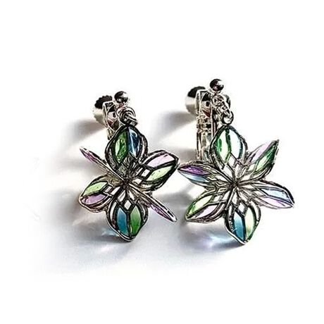 [型番:EC24059]モロッコタイルや模様から着想したアクセサリーシリーズ。お花モチーフは角度によって形も違って見える立体感あるピアス。ステンドグラスのような美しい配色のピアスです。