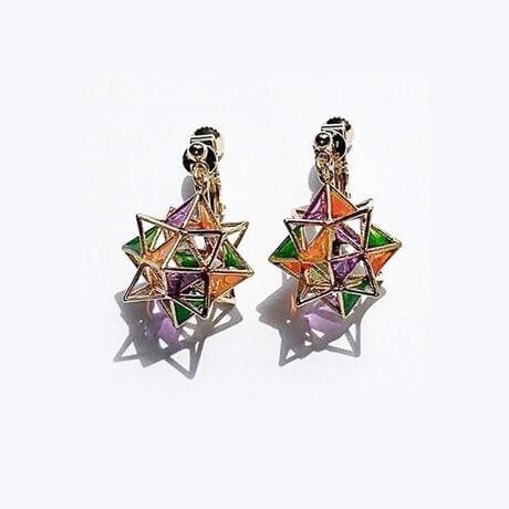 [型番:EC24058]ステンドグラスのような風合いのピアス。モロッコのタイルから着想した柄をカラフルに大人っぽく仕上げました。