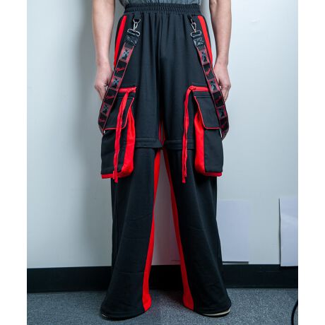 大胆な配色とハーフパンツにも可変出来る極太ワイドシルエットがポイントのストリート感溢れる一枚。
