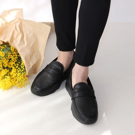 アッパーのパンチングデザインがアクセントになるFin(フィン)のパンチングローファー厚底スリッポンが登場しました。気軽にいつでも履けるスリッポンスニーカーは一足は持っておきたい定番アイテム。ボリューム感のある厚底ソールは程よい高さの5cmで高すぎず低すぎない絶妙な高さはスタイルアップも叶います。アッパーはローファーデザインなのでカジュアルすぎないのが嬉しい。