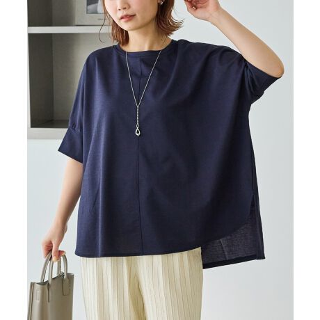 ラウンド裾にサイドスリットを入れ抜け感をプラス、着るだけでさまになる前後差を付けたデザイン。