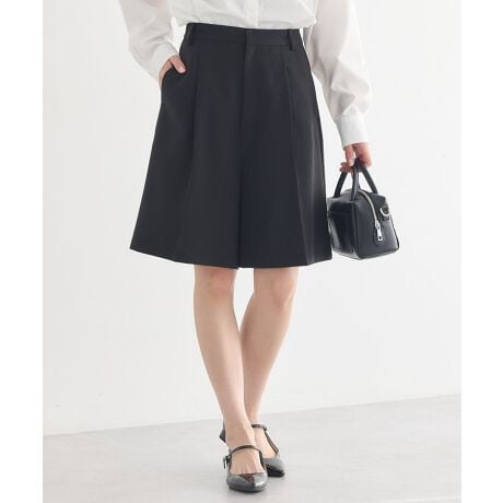 ほどよい丈感で、毎日頼れる大人のバミューダすっきりとしたシルエットと安心感のある丈が魅力の一本です。ひざまわりを自然にカバーしながら、脚をきれいに見せてくれるので、大人カジュアルな装いに取り入れやすいです。バックウエストはゴム仕様で、長時間の着用でも締め付け感が少なく、快適に過ごせます。トップスを選ばないシンプルなデザインのため、ブラウスできれいめにも、カットソーでラフにも着こなせます。通勤やお出かけ、休日のリラックスシーンまで幅広く活躍し、コーディネートの幅が自然と広がるのがうれしいポイントです。季節の変わり目にも使いやすく、一本あると着回しに重宝します。生地の厚さ[普通]