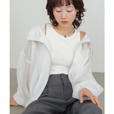 昨年春秋ともに人気だったさらっとしたマットな程よい透け感のシアーブルゾンが再登場です!ふんわりとしたボリューム袖とゆったりとしたリラックスシルエットが、中に着る物も問わずに着用いただけます。これからの季節〜秋先まで活躍すること間違いなしのブルゾンです。