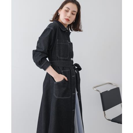 羽織るだけで目を惹くロング丈のデニムコート。配色カラーのステッチをアクセントに効かせ、Gジャンのようなワークディティールを取り入れた一枚。付属の共地ベルトを取ってラフに羽織ったり、ウエストに巻いてメリハリを付けたりと、お好みによってアレンジも可能。