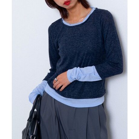 ほどよい透け感のあるシアー素材と、インナーを重ね着しているように見えるレイヤードデザインが魅力の一枚です。