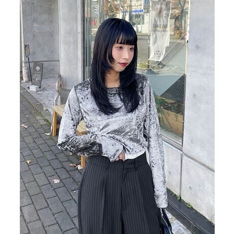 品ある光沢で秋冬春シーンを今季風に彩るベロアクルーTシャツ