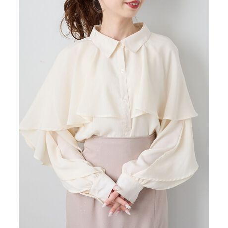 上品な印象のケープ風のデザインが目を引くブラウス。
