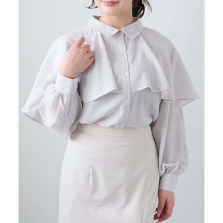 上品な印象のケープ風のデザインが目を引くブラウス。