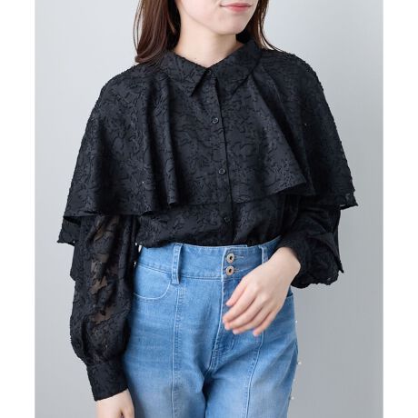 上品な印象のケープ風のデザインが目を引くブラウス。