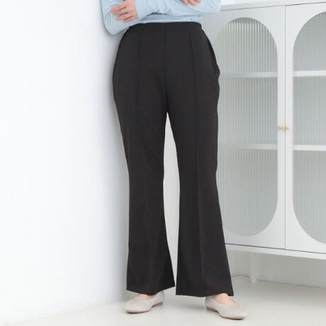 センタープレス入りのすっきりとしたフロントデザインで、カジュアルになりすぎず上品見えするフレアパンツです。