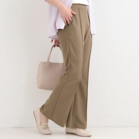 センタープレス入りのすっきりとしたフロントデザインで、カジュアルになりすぎず上品見えするフレアパンツです。