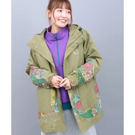 裾から腰にかけて個性溢れるカラフルな刺繍を施した ゴースローキャラバン的「ヒッピー!」スタイルを象徴するフィールドコート。