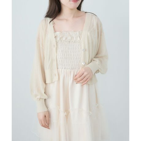 冷房対策の羽織としてや、ボタンを閉めてトレンド感あるシアートップスとしても活躍する、絶妙な透け感のニットカーディガンです。