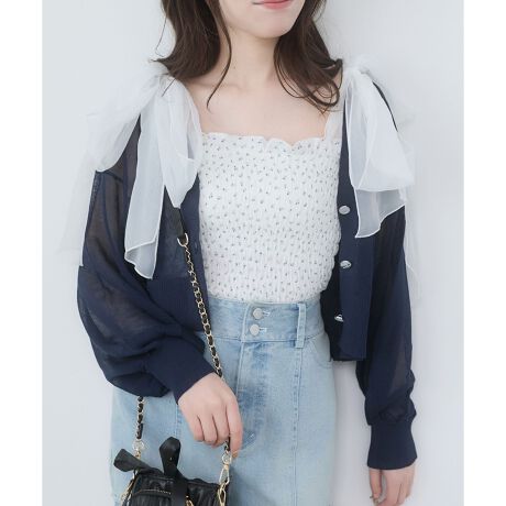 キャミワンピに羽織れば、レイヤードスタイルのフェミニンコーディネートが完成!