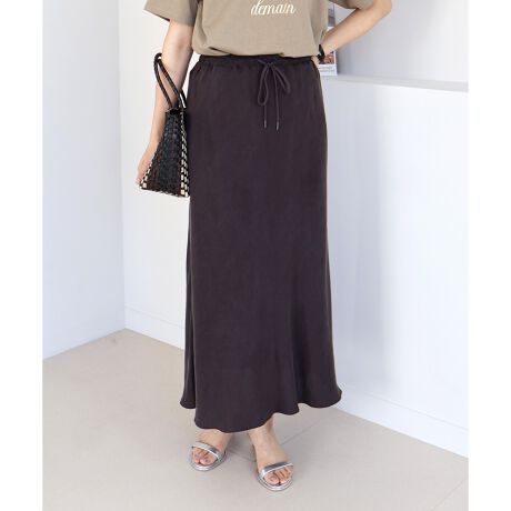微光沢のとろみ素材が魅力で裾へ向かうドレープ感も美しい、シルエットにこだわったナロースカートです。