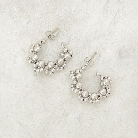 顔まわりを一瞬で華やかに。品よく映える立体パール調フープ