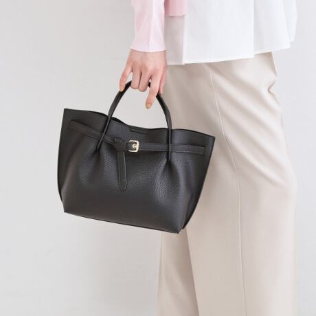 ・シンプルなフォルムをベースにフロント部分にはベルト巻デザインを施したどんなコーデにも合わせやすいトートバッグ