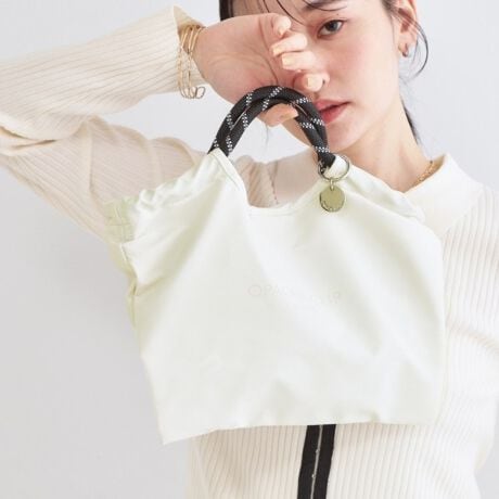 ・持ち手部分はロープ調のデザインハンドルで、持ち手を絞って肩掛けとしても使用可能