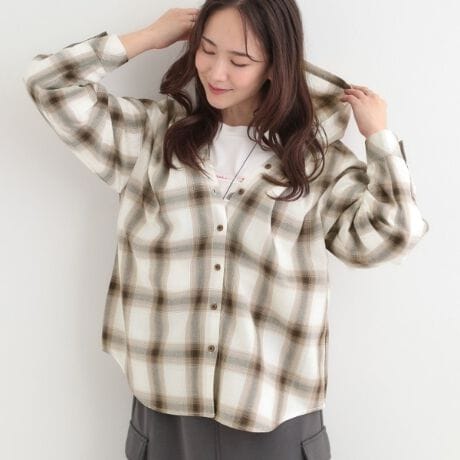 チェックシャツにフードをプラスしたデザインで、程よくゆとりのあるシルエットで、リラックス感があります。