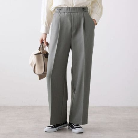 タック入りで縦ラインを強調し、脚をまっすぐ美しく見せる設計。
