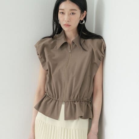 スタイリッシュなジップアップデザインがポイントのスリーブレスブルゾン。
