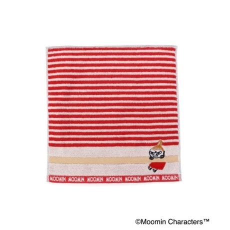 シンプルにしてセンスのあるボーダー柄とそのボーダーにしがみつくミイが愛らしいデザインのタオルです。