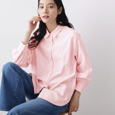 すっきりとしたレギュラーカラーと程よくゆとりのあるシルエットで、きちんと感とリラックス感を両立しています。