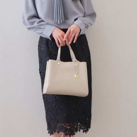カシメをつけた軽量合皮のミドルサイズのトートバッグ
