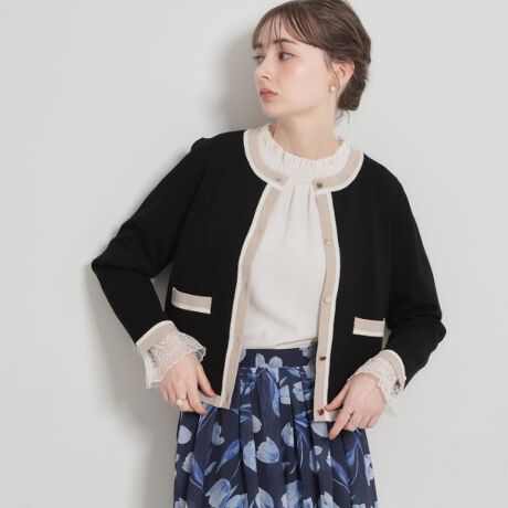 袖口と衿ぐりにプチスカラの配色ラインを入れた、キレイ目カーディ