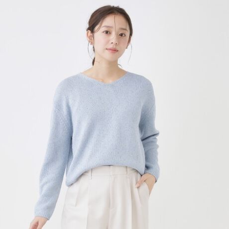散りばめたようなラメノットがシャイニーな印象のニットトップス。